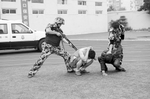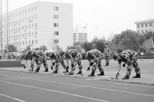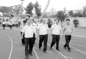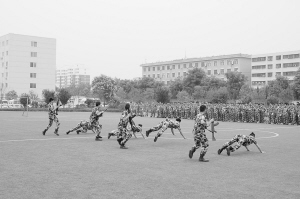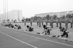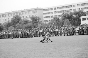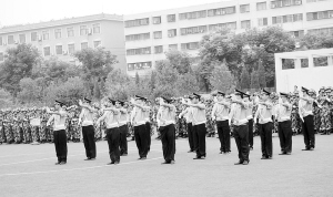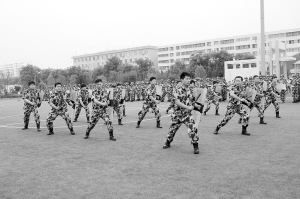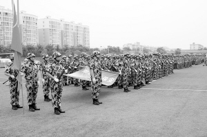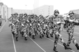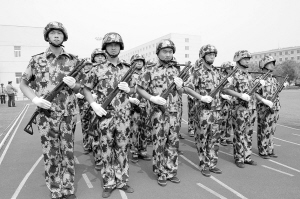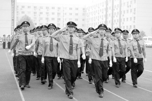 响彻苍穹的口号,整齐划一的步伐在周口市公安局训练场上展现。周口市保安服务公司300多名队员正在做汇报演出前的最后演练。