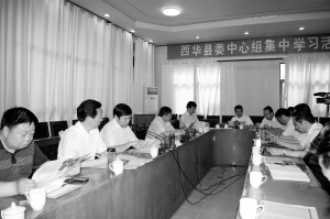 本报讯 (记者 张猛 通讯员 金小旺)6月21日,西华县委中心组开展集中学习活动(如图),集中学习讨论市委书记徐光在市委中心组集中学习时所作的题为《提高凝聚力创新力执行力,加快实现富民强市新跨越》讲话。县委副书记、县长王田业,县委副书记、统战部长韩华,县人大常委会主任耿宝山,县政协主席范庆云,县委正县长级干部高潮,县委常委、纪委书记刘体峰,县委常委、副县长陈秉生,县委常委、组织部长程维峥,县委常委、县委办公室主任陆志杰,县委常委、宣传部长牛正田及其他县处级领导干部出席会议。