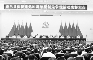 本报讯(记者 杜少华 文/图)6月25日,全县庆祝建党91周年暨创先争优活动表彰大会召开。热烈庆祝中国共产党成立91周年,大力表彰近三年来全县创先争优活动中涌现出来的先进基层党组织、优秀共产党员、优秀党务工作者和优秀村党支部,认真总结创先争优活动的好做法、好经验,并结合正在全县开展的“作风转变暨环境创优”活动,对如何巩固创先争优活动成果进行安排部署。鹿邑县委书记陈志伟出席会议并作重要讲话。
