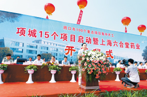 6月18日,在项城市产业集聚区,随着周口市人大常委会副主任王建庄、解冰山,项城市市长黄真伟按动启动球,上海六合堂药业等项城市15个重点项目正式开工建设。