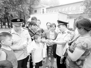为确保暑假期间留守儿童的食品安全消费,7月初以来,太康县工商局组织10多辆“三下乡”食品流动宣传车,深入全县各个乡镇村庄,向留守儿童及群众讲解食品安全消费常识,防止食品安全事故发生。图为7月13日该县工商局城郊工商所执法人员正在辖区一村庄向留守儿童讲解食品识假辨假常识。