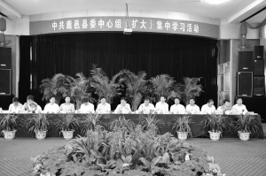 本报讯(记者 杜少华 文/图)7月15日,鹿邑县委书记陈志伟主持召开县委中心组(扩大)集中学习活动,传达学习省直管县考察活动情况和省政府第104次常务会议精神。会上,中心组成员围绕“各地大发展,鹿邑怎么办”这一个主题,结合鹿邑实际进行了一场轰轰烈烈的思想大讨论,大家谈体会、谋良策,带着强烈的责任感和使命感从不同角度深刻剖析鹿邑发展现状,一针见血地指出制约鹿邑发展的问题,切合实际提出了加快鹿邑发展的思路、建议及意见。