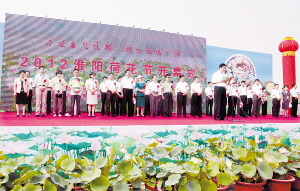 本报讯(记者李凤霞) 龙湖荷花香溢古城盛夏,魅力淮阳诚邀四海宾朋。7月18日上午,2012年淮阳荷花节在羲皇文化广场隆重开幕。副省长张广智,省军区副司令员、参谋长宋中贵,市委书记徐光,市长岳文海,市人大常委会主任李洪民,市政协主席穆仁先出席开幕式。