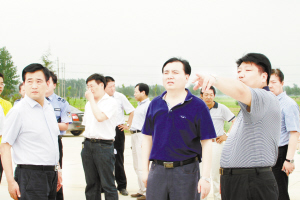 7月9日,项城市委副书记、市长黄真伟(右二)察看项目建设。杨光林 张康 摄