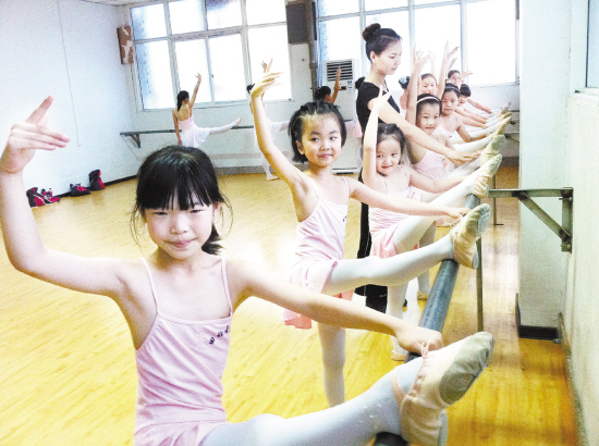 昨日,一少儿舞蹈班里,孩子在老师的指导下练习舞蹈基本功。暑假里,各种特长兴趣班吸引了众多孩子报名参加,孩子们在轻松愉快的氛围中学习课外知识或一技之长,度过快乐健康的暑假。(记者 王映 摄)