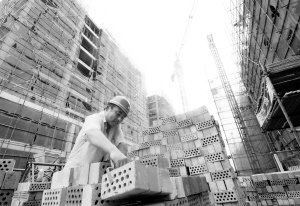 昨日,文昌大道安置区建设工地工人正在紧张施工。截至目前,文昌大道安置区建设取得显著成效,其中安置B区一期9栋楼主体工程基本完成,可提供房屋535套;二期10栋778套安置房已于近日开工建设;安置D区7栋楼主体工程已封顶,可提供房屋387套,10月底可达到入住条件。(记者 李寒 摄)