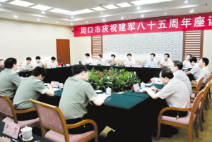本报讯 (记者 李凤霞) 周口军地领导在周口饭店欢聚一堂,共同庆祝中国人民解放军建军85周年,畅叙鱼水情谊,共商双拥工作发展大计。市委书记徐光、市长岳文海、市委副书记吕彩霞,市委常委、周口军分区政委张保旭,周口军分区司令员罗明豪出席座谈会。
