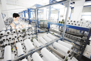 为充分发挥资本聚集效应,降低中小企业经营成本,市经济开发区高起点规划,高标准建设了高新科技工业园。目前,新华正塑编、福源玻璃、超越电子等一批项目相继入驻该园区,初步形成了以汽车配件、电子电器、塑编包装等高新科技产业为主导的现代化工业园区。图为周口华隆塑编公司生产车间。