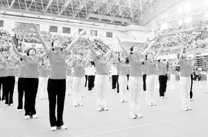 今年全民健身的主打项目是第九套广播体操。新广播体操的最大亮点就是加入头部动作,可以有效改善头部血液循环、减轻颈椎病的症状,更加适合每天坐在办公室面对电脑的都市白领们。据介绍,第九套广播操有望在全市机关、学校、企事业单位推广为工间操,并形成一种制度。