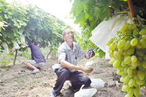 昨日,在商水练集镇朱集美人指千亩葡萄园内,农民正在对部分成熟的葡萄进行采摘。该园种植葡萄有红提、白提、青提等多个品种。