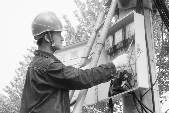 扶沟县供电公司利用远程终端抄表系统等先进科技设备,加大违章用电、窃电稽查力度,在社会上营造出合法用电、安全用电的良好氛围。图为该公司工作人员对县集聚区豫丰纺织厂电表计量进行检测。(刘滨 刘军胜 摄)