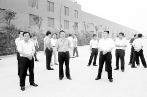 县领导王国玺等陪同商水县党政考察团一行参观县产业集聚区。(王南 摄)