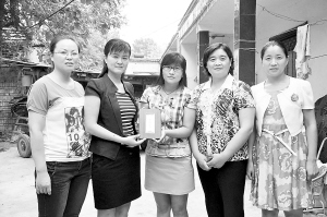 武美菊(中)与县妇联、王集乡领导在一起。(刘俊涛 摄)