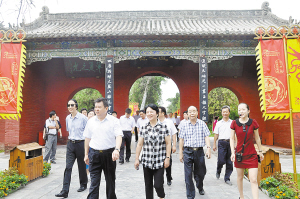 图为孔玉芳一行在徐光等市领导的陪同下,在淮阳县太昊陵调研我市文化旅游产业发展情况。