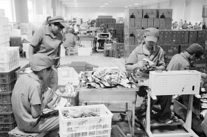 周口华发食品有限公司已于近日投产。该公司扩大食品加工基地规模,做大、做强主导产业,生产过程达到安全生产要求,固体废物和废气排放达到了环保标准,产品质量得到国家有关部门认证。图为工人们正在车间里忙碌。(记者 沈湛 摄)
