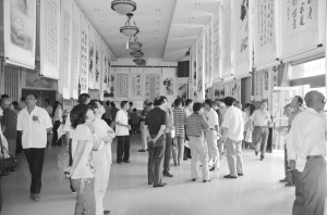 8月14日,淮阳·新郑龙湖荷花书画联展在县总工会大厅拉开帷幕。本次举办的龙湖荷花书画联展,是2012年淮阳荷花节的一项活动,以“荷花·和美·合作”为主题,用书画艺术的形式,充分展示了淮阳的厚重文化与秀美风光。参展的130余幅书画作品,虽然尺幅不同、体裁不同、技法不同,但主题鲜明,内容健康,格调高雅。(侯俊豫 闫俊岭 摄)