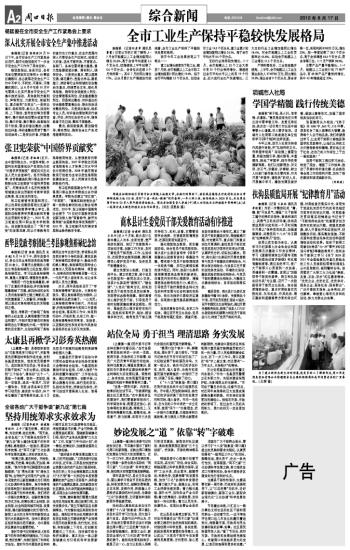 全市工业生产保持平稳较快发展格局