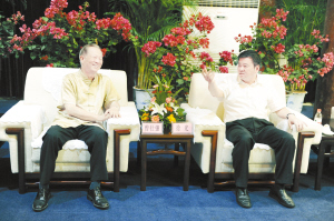 徐光首先代表市委、市政府对曾仕强教授一行的到来表示诚挚欢迎,并简要介绍了周口市情。徐光说,周口作为一个典型的农业大市、产粮大市,周口一年的粮食产量可供全国人民吃上半个月。可以说,周口就是河南的缩影。周口又是人力资源大市,同时也是一个工业迅速发展的城市,交通优势明显,大广高速、宁洛高速、商周高速等高速公路穿境而过,漯阜铁路连接京广、京九两大交通动脉,周口港为我国最大内陆港口,通江达海,交通便利,周口至郑州高速公路已开工兴建,建成后周口到新郑机场只需40分钟,比以往缩短一个小时路程。周口又是文化资源大市,文化底蕴深厚,全市境内名胜古迹众多,文化灿烂,历史悠久,人杰地灵,尤其是深厚的历史文化,已成为周口发展的一张名片、一大优势和潜在经济发展增长极。近年来,周口持续推进文化建设,推进文化旅游深度融合,充分发挥文化资源优势,加快文化改革发展,围绕“伏羲文化、老子文化、姓氏文化、农根文化”四种文化资源,着力建设华夏历史文明传承创新区的核心区,打造羲皇故都、朝祖圣地,老子故里、道家圣地,万姓同根、根脉圣地“一区三圣地”,努力使周口由文化大市向文化强市迈进。同时,鹿邑县委、县政府更以文化兴县,加大宣传、推介“老子故里”力度,做大老子文化开发这篇文章,规划了老子文化产业园,积极筹划老子学院等,以此为平台打造老子文化研究胜地,努力提升周口文化旅游的内涵品位和吸引力。