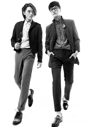 本季的薄呢西服,更加轻薄柔软贴身,搭配浅色系长裤,整体造型更加时髦。