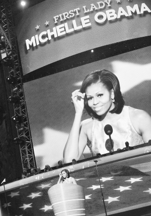 9月4日,在美国北卡罗来纳州夏洛特举行的民主党全国代表大会上,美国第一夫人米歇尔·奥巴马发表演讲,为丈夫竞选助阵。 新华社记者 张军 摄