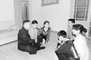 金正恩夫妇访问乔迁仓田街新居家庭 这张朝中社9月5日提供的照片显示,朝鲜最高领导人、朝鲜人民军最高司令官金正恩(左一)携夫人李雪珠(左三)访问新入住仓田街新居的居民家庭。