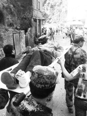 9月7日,救援官兵在震中洛泽河镇抢救受伤群众。新华社发