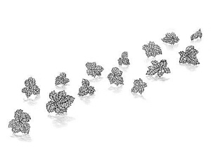 这套珠宝,制作于19世纪中叶,共有十二枚古董钻石叶形胸针及一对耳夹组成,由萨夫拉夫人珍藏拍卖,一切只为慈善。卢浮宫为纪念她和丈夫的捐赠而为其中一展厅命名为Salle Edmond et Lily Safra。