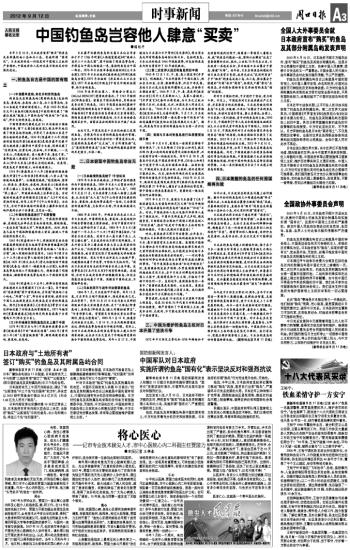 中国钓鱼岛岂容他人肆意“买卖”