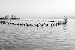 上百人集体漂浮 呼吁关注死海萎缩 9月14日,人们在以色列死海酒店区参加集体漂浮活动,呼吁关注死海萎缩问题。9月14日日出时分,以色列上百人在死海集体漂浮,呼吁国际社会关注死海萎缩问题。死海以神奇的死海泥与巨大浮力闻名于世,但水量不断减少,面临萎缩乃至消失的危险。新华社发
