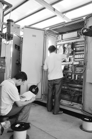 图③今年川汇区长城门业双百万、久通电缆、瑞特电气等6个续建项目进展顺利,四方药业、阳光电缆、百亨门业、广安科技等新建项目正加紧施工。图为阳光电缆工作人员对设备进行调试。樊葩菡 栾培良 摄