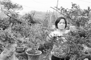 昨日,商水县城关乡大刘村一村民在修剪盆景。近年来,该县大力发展花卉苗木种植面积3000余亩,产品销往周边十多个县市区,年创效益5000多万元。 (岳建辉 刘飞 摄)