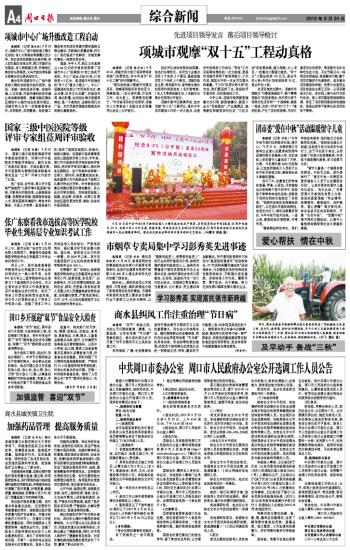 黄分田对项城市中心广场升级改造工程的启动表示热烈祝贺。他说,项城一流的政务环境、法制环境、人文环境、市场环境和治安环境让来宾感受颇深,随着项城在豫东区域性中心城市地位的逐步确立,项城市和义乌市一定能够紧密合作,共同前进,共同繁荣。他希望工程投资方和项目承建方要牢固树立精品意识,不断强化质量监管,把中心广场打造成个性鲜明、功能完善的豫东一流商住综合体。