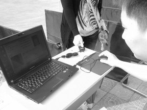 2012年国家司法考试22日开考,我市共有878人报考。据了解,本次司法考试我市首次运用指纹识别系统。图为考生通过指纹识别系统验证身份。记者 朱东一 王亚辉 摄