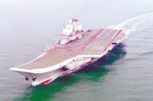 左图 9月25日,我国第一艘航空母舰“辽宁舰”已按计划完成建造和试验试航工作。这是2012年5月,中国海军航母平台正在进行试航。(新华社发)