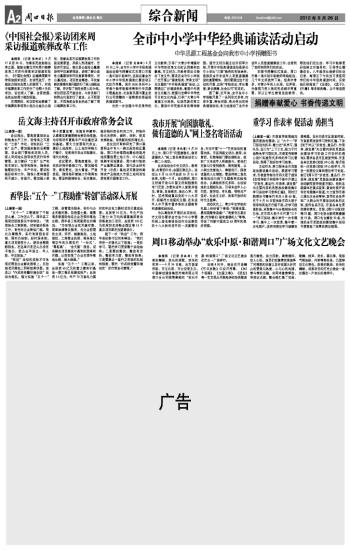 全市中小学中华经典诵读活动启动