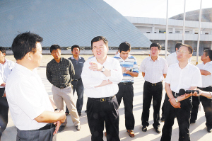 徐光一行先后来到周口广播电视多功能发射塔、市体育中心、文昌生态园、东新区招商大厦、市农信社综合培训中心、市行政中心、市人防中心、周口公园、市科技馆等在建和拟建重点项目建设现场,认真察看项目建设情况。每到一处,徐光都详细询问工程总体情况、建设进度和需要协调解决的问题,并就项目建设提出指导性意见。在周口广播电视多功能发射塔项目建设工地,徐光详细了解项目建设进度,询问承建单位工作中有没有困难、施工环境如何等,并指出,广播电视多功能发射塔作为周口的地标性建筑,建设中一定要确保质量第一,严把质量关,抓好施工安全、环境保护和工程进度,努力把发射塔工程建成精品工程、样板工程。同时,中建七局在中国建筑界有很高的声誉,而且在与周口的长期合作中打出了品牌。在周口下一步的城市建设发展中,希望中建七局能够发挥积极作用,为周口城市发展增光添彩。在市体育中心,徐光认真了解体育中心的总体发展规划,实地察看体育场项目建设进度。徐光指出,目前体育中心的整体形象已经出来,下一步,有关部门要在提升上下工夫,抓好“软件”建设,加强管理,科学运作,打品牌,树形象。要按照高起点定位、高标准规划、深层次挖掘、高质量建设的总体要求,加快项目建设进度,推进体育惠民工程,不断满足人民群众多样化需求。同时,要按照市场规律,创新机制把竞技体育与全民健身结合起来,搞好体育设施的管理和运营,充分发挥体育设施的经济效益和社会效益。在东新区招商大厦施工现场,徐光指出,东新区招商大厦的建设对于拉动东新区发展具有重大意义,希望项目承建单位在保证质量的前提下,加快施工进度。