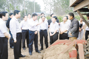 秸秆还田是一项培肥地力的增产措施,并且能够杜绝焚烧秸秆造成的大气污染。在沈丘县卞路口乡高山店行政村的农田里,增林农机专业合作社社长马建新正驾驶着集玉米收割、秸秆粉碎还田为一体的农业机械紧张作业。看到马建新驾驶着满载玉米的收割机来到地头,徐光、岳文海快步走上前去,与他亲切攀谈。“秸秆还田群众是否接受、每亩的收割成本是多少、秸秆还田都有哪些好处、大规模推广还存在哪些困难”,徐光问得十分仔细。“每亩的收割价格是80元,秸秆还田后能够增加地力,每亩小麦能够增产100斤左右,现在群众正在逐渐接受这种耕作模式,但是收割成本相对较高还是个问题”。听了马建新的回答,徐光说,秸秆还田具有促进土壤有机质含量增加、改善土壤性状、提高作物产量的好处,而且能够降低秸秆焚烧引起的空气污染,应该大力推广应用。但在操作过程中,要注重科学,讲究方式方法,防止发生因操作不当引起土壤病菌增加、作物病害加重及缺苗等不良现象。同时,农机部门要加大对农民购置农机具的补贴力度,农业部门要组织农技人员深入田间地头推广新知识、普及新技术,引导农民科学种田,确保丰产丰收。