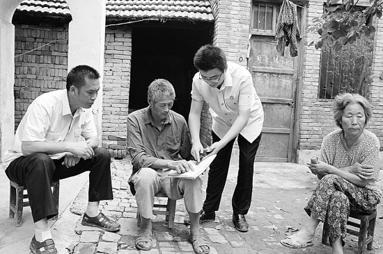 太康县人民法院法官在杨庙乡西街村张某家中现场办案,调解纠纷。该院在“政法干警核心价值观”主题教育活动中,切实从人民群众的需求出发,注重加强案件调解和巡回审判工作,积极深入田间地头、农家庭院,为群众化解矛盾纠纷。(记者 刘俊涛 通讯员 李康 摄)