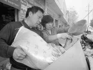 近日,商水县通过农技人员田间指导、人口学校开设讲座等形式推广麦播实用技术,指导农民科学拌种、适量播种,确保小麦苗壮苗齐。图为郝岗乡农民在张帅旗农资店为小麦拌药准备播种。(吕耀光 张慧敏 摄)