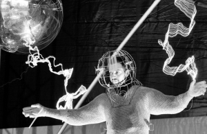 ↑美国魔术师成功挑战百万伏电压72小时电击 10月8日,美国著名魔术师大卫·布莱恩在纽约54码头的魔术表演中接受高压电击。当日,美国魔术师大卫·布莱恩在纽约54码头成功挑战人类极限。他连续3天3夜置身于100万伏高压人工雷电环境中,身着特制的金属外套和头盔,不眠不食,接受72小时持续电击。新华社发