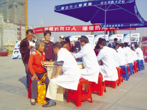 当天上午,周口市交通医院组织十多人的专家诊疗组,针对肛肠、颈肩腰腿、内科和妇科等常见病进行现场专家讲解和诊疗,并携带心电图机、彩超等大型医疗设备在周口市五一广场举行义诊活动。这次活动为期三天,现场排队的市民根据自己的情况向专家提问,并有序地进行检查。此次活动不但省去了去医院诊治的繁琐,而且为市民省了不少钱。市民李秀琴女士欣慰地告诉记者:“送啥都不如送健康,像这种免费体检活动医院应该经常举行。”图为义诊活动现场。徐义勇 摄