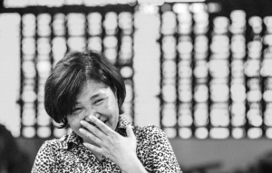 10月9日,在杭州一家证券营业部,一位股民面露笑容。当日,沪深股市双双大涨。上证综指以2115.23点报收,较前一交易日涨1.97%;深成指收于8743.86点,较前一交易日涨2.39%。新华社记者 韩传号 摄