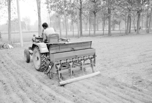 昨日,鹿邑县贾滩乡柿园村村民在播种小麦。由于土地墒情好,天气晴朗,化肥、种子等农资货源充沛,据有关部门统计,鹿邑县百万亩小麦的播种已接近尾声。
