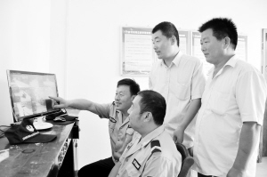 10月15日,在城北办马庄行政村箔箩张自然村,巡防队员们正在监控室里认真查看村内视频记录。自年初“技防惠民”项目建设工作部署以来,全区新增电子监控平台200个,新增电子监控摄像头1800个,全区群防群治能力有了显著提高。樊葩菡 张彦琪 摄