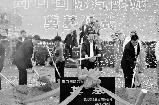 10月16日,“周口汽车产业的航母”——周口国际汽配城开工奠基仪式隆重举行。图为市、县领导为周口汽配城奠基。(记者 岳建辉 摄)
