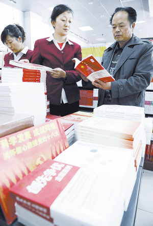 “喜迎十八大”图书展销受欢迎 10月22日,顾客在银川市新华书店挑选“喜迎十八大”系列图书。近日,宁夏银川市各新华书店纷纷设立“迎接十八大优秀出版物”图书音像专柜,集中展销中国共产党历史、发展等系列图书及音像制品,深受广大读者欢迎。 新华社发