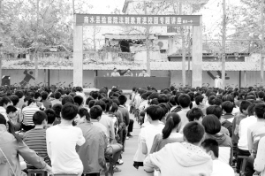 为贯彻落实《河南省人民检察院2012年向社会公开承诺办好的“十件实事”检查落实标准》有关精神,近日,商水县人民检察院公诉科检察官到该县某中学为同学们讲了一堂生动的法制课,通过法制讲座帮助未成年人在实践中掌握法律知识,增强法治观念。(周松雷 摄)