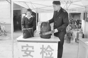 十八大召开前夕,我市车站强化对进站上车旅客安检查危力度,保证了旅客运输安全、稳定。图为八一快运站对上车旅客行李进行安检。(记者 王亚辉 摄)