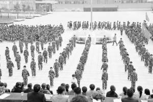 10月30日,郸城县第二实验中学七年级23个教学班在国旗广场举行队列广播操比赛。经过评委认真打分,评选出一、二、三等奖和优胜班级。此次活动丰富了校园文化生活,规范了班级管理,增强了学生体质和集体凝聚力。检验了学校广播操教学效果,促进了体育活动的开展,展示了学生奋发向上的精神风貌,是第二实验中学 “亮点工程”建设的一项重要活动。图为比赛现场。(张新 丁超 摄)