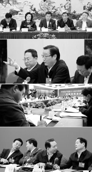 听、说、记、议 连日来,出席中国共产党第十八次全国代表大会的各代表团代表分组讨论十八大报告。代表们或认真听取其他代表发言;或发表自己的感想;或仔细阅读报告、记录发言;或与身边代表展开讨论(拼版照片)。